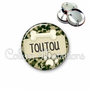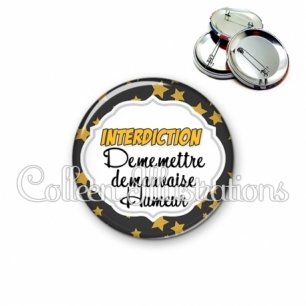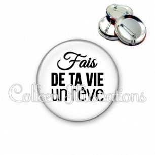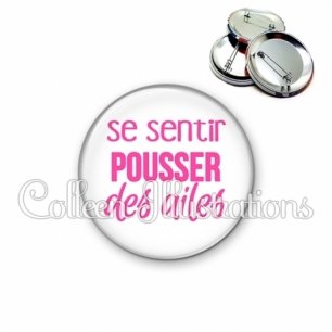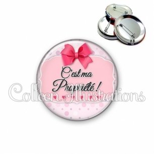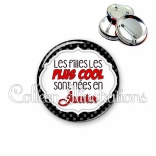 Image imprimée en haute résolution sur papier de qualité, protégée d'un film plastique, et sertie sur une coque et épingle métallique.