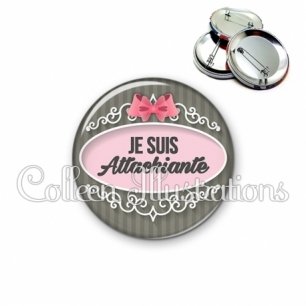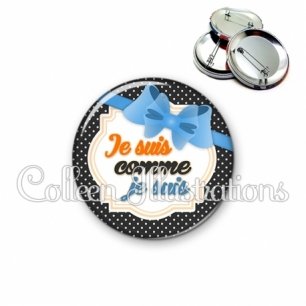 Image imprimée en haute résolution sur papier de qualité, protégée d'un film plastique, et sertie sur une coque et épingle métallique.