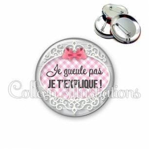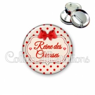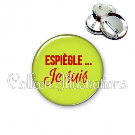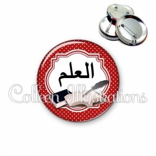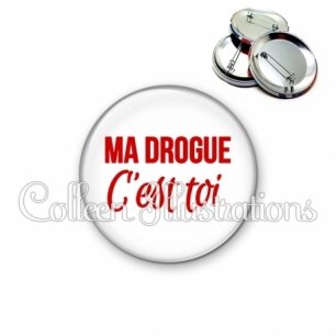 Image imprimée en haute résolution sur papier de qualité, protégée d'un film plastique, et sertie sur une coque et épingle métallique.