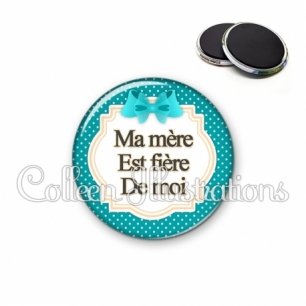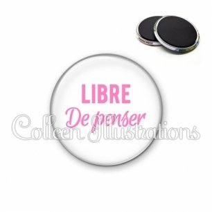 Magnet métallique avec image fantaisie et texte.