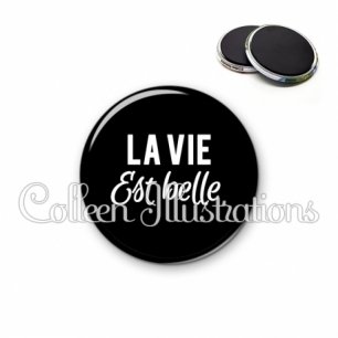 Image imprimée en haute résolution sur papier de qualité, protégée d'un film plastique, et sertie sur une coque métallique avec dos aimanté.
