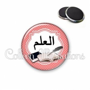 Image imprimée en haute résolution sur papier de qualité, protégée d'un film plastique, et sertie sur une coque métallique avec dos aimanté.