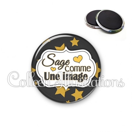 Image imprimée en haute résolution sur papier de qualité, protégée d'un film plastique, et sertie sur une coque métallique avec dos aimanté.