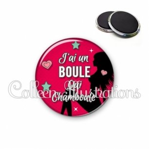 Magnet métallique avec image fantaisie et texte.