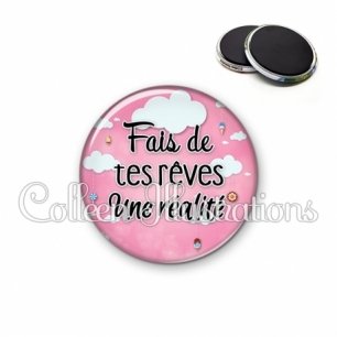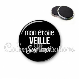 Image imprimée en haute résolution sur papier de qualité, protégée d'un film plastique, et sertie sur une coque métallique avec dos aimanté.