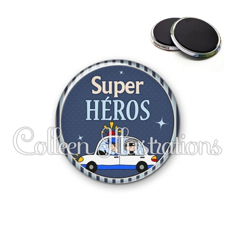 Image imprimée en haute résolution sur papier de qualité, protégée d'un film plastique, et sertie sur une coque métallique avec dos aimanté.
