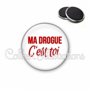 Image imprimée en haute résolution sur papier de qualité, protégée d'un film plastique, et sertie sur une coque métallique avec dos aimanté.
