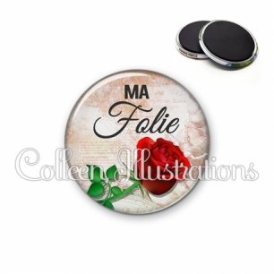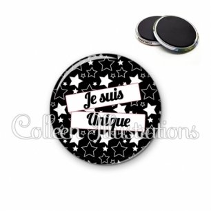 Image imprimée en haute résolution sur papier de qualité, protégée d'un film plastique, et sertie sur une coque métallique avec dos aimanté.