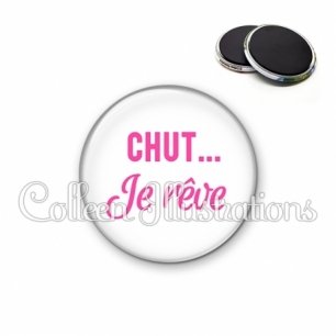Image imprimée en haute résolution sur papier de qualité, protégée d'un film plastique, et sertie sur une coque métallique avec dos aimanté.