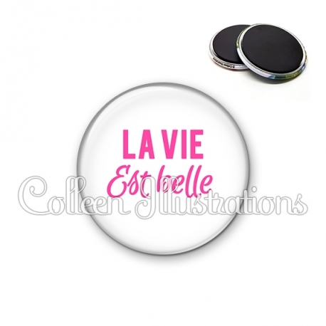Image imprimée en haute résolution sur papier de qualité, protégée d'un film plastique, et sertie sur une coque métallique avec dos aimanté.