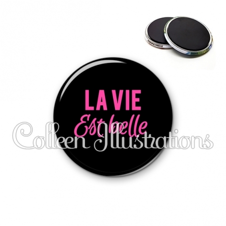 Image imprimée en haute résolution sur papier de qualité, protégée d'un film plastique, et sertie sur une coque métallique avec dos aimanté.