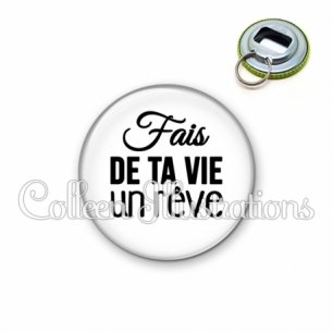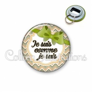 Image imprimée en haute résolution sur papier de qualité, protégée d'un film plastique, et sertie sur une coque métallique avec dos décapsuleur.