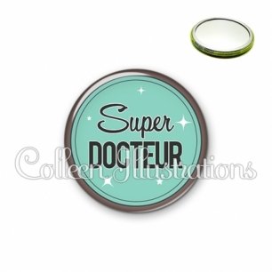 Miroir simple avec dos métallique décoré d'une image fantaisie et texte.