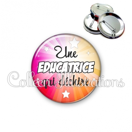 Image imprimée en haute résolution sur papier de qualité, protégée d'un film plastique, et sertie sur une coque et épingle métallique.