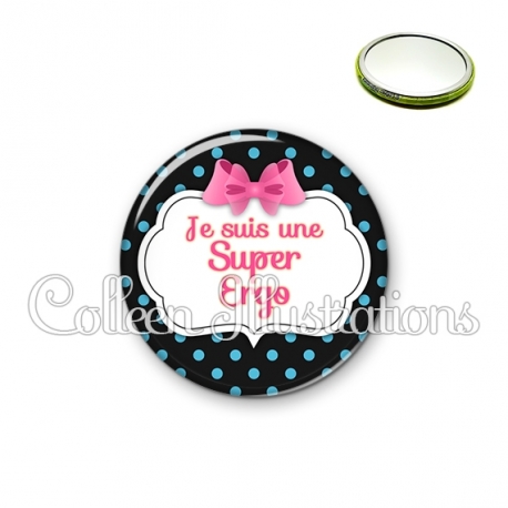 Miroir simple avec dos métallique décoré d'une image fantaisie et texte.