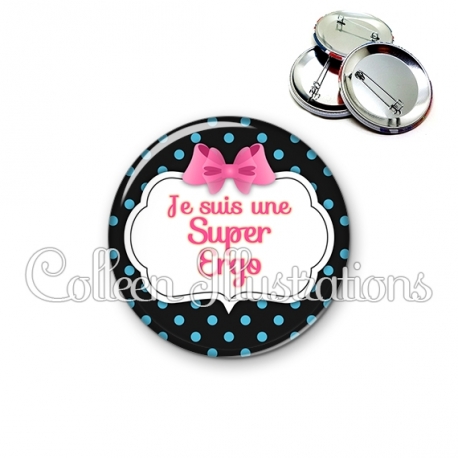 Image imprimée en haute résolution sur papier de qualité, protégée d'un film plastique, et sertie sur une coque et épingle métallique.