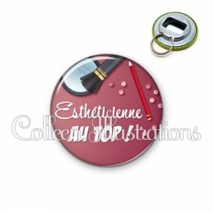 Image imprimée en haute résolution sur papier de qualité, protégée d'un film plastique, et sertie sur une coque métallique avec dos décapsuleur.