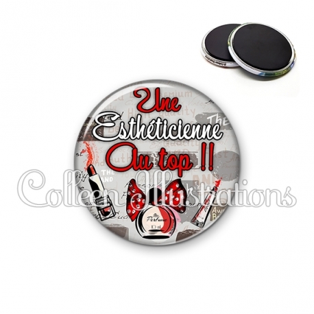 Image imprimée en haute résolution sur papier de qualité, protégée d'un film plastique, et sertie sur une coque métallique avec dos aimanté.