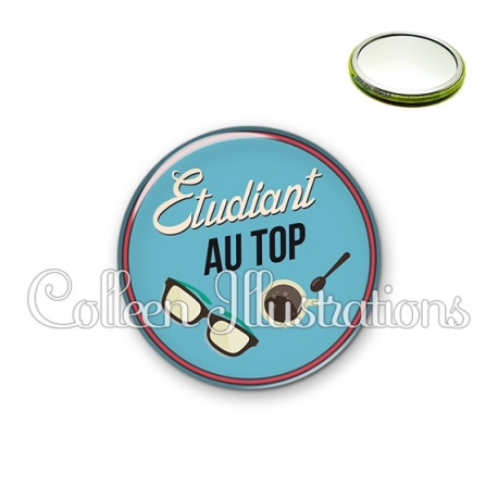 Miroir simple avec dos métallique décoré d'une image fantaisie et texte.