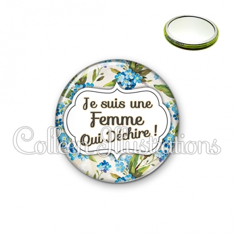 Miroir simple avec dos métallique décoré d'une image fantaisie et texte.