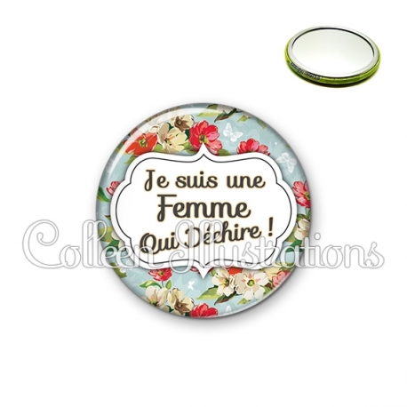 Miroir simple avec dos métallique décoré d'une image fantaisie et texte.