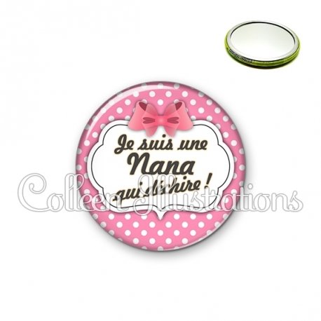 Miroir simple avec dos métallique décoré d'une image fantaisie et texte.