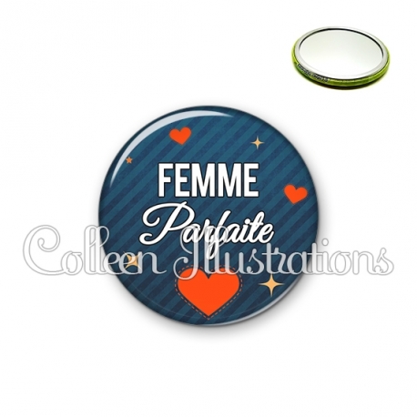 Miroir simple avec dos métallique décoré d'une image fantaisie et texte.