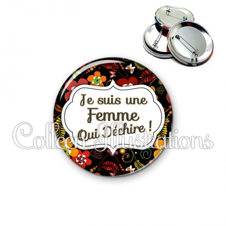 Image imprimée en haute résolution sur papier de qualité, protégée d'un film plastique, et sertie sur une coque et épingle métallique.