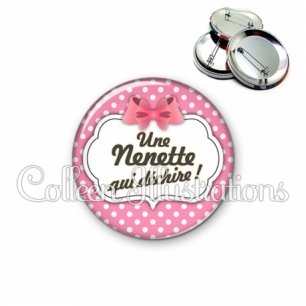 Image imprimée en haute résolution sur papier de qualité, protégée d'un film plastique, et sertie sur une coque et épingle métallique.