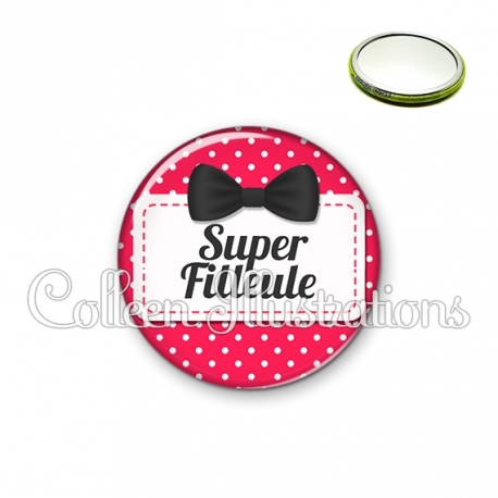 Miroir simple avec dos métallique décoré d'une image fantaisie et texte.