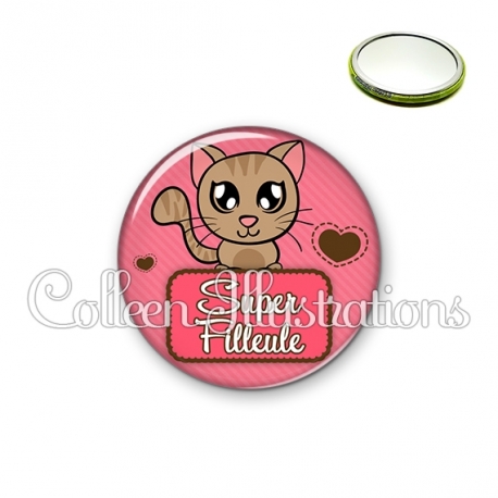 Miroir simple avec dos métallique décoré d'une image fantaisie et texte.