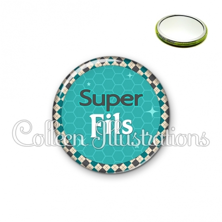 Miroir simple avec dos métallique décoré d'une image fantaisie et texte.