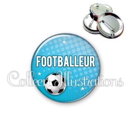 Image imprimée en haute résolution sur papier de qualité, protégée d'un film plastique, et sertie sur une coque et épingle métallique.