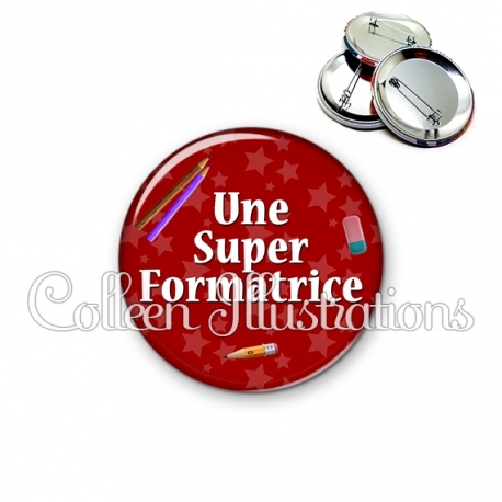 Image imprimée en haute résolution sur papier de qualité, protégée d'un film plastique, et sertie sur une coque et épingle métallique.