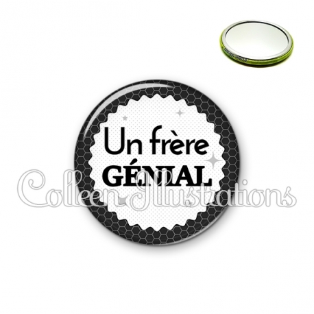 Miroir simple avec dos métallique décoré d'une image fantaisie et texte.