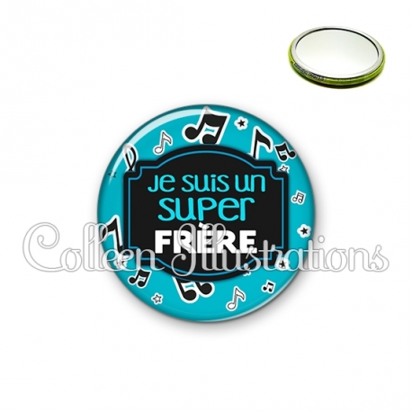 Miroir simple avec dos métallique décoré d'une image fantaisie et texte.