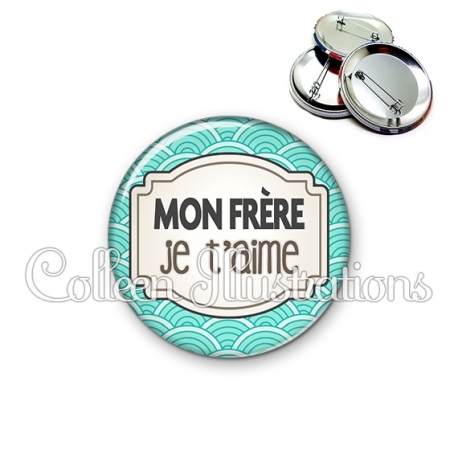 Image imprimée en haute résolution sur papier de qualité, protégée d'un film plastique, et sertie sur une coque et épingle métallique.