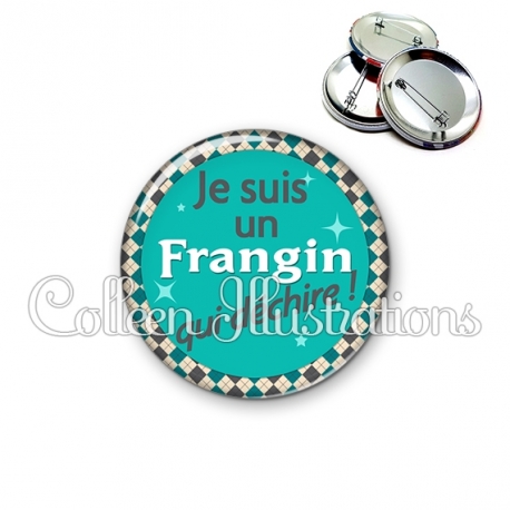 Image imprimée en haute résolution sur papier de qualité, protégée d'un film plastique, et sertie sur une coque et épingle métallique.