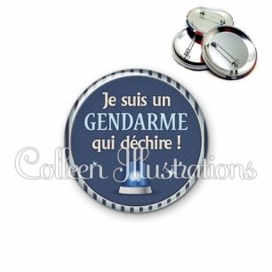 Image imprimée en haute résolution sur papier de qualité, protégée d'un film plastique, et sertie sur une coque et épingle métallique.