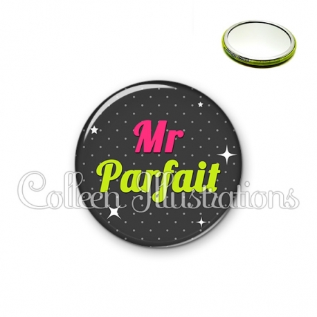 Miroir simple avec dos métallique décoré d'une image fantaisie et texte.