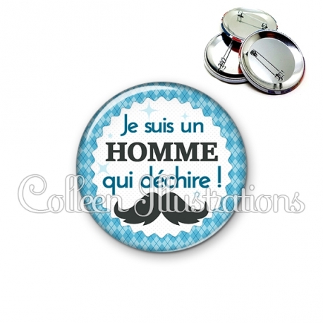 Image imprimée en haute résolution sur papier de qualité, protégée d'un film plastique, et sertie sur une coque et épingle métallique.