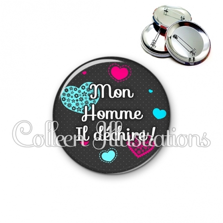Image imprimée en haute résolution sur papier de qualité, protégée d'un film plastique, et sertie sur une coque et épingle métallique.