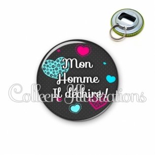 Image imprimée en haute résolution sur papier de qualité, protégée d'un film plastique, et sertie sur une coque métallique avec dos décapsuleur.