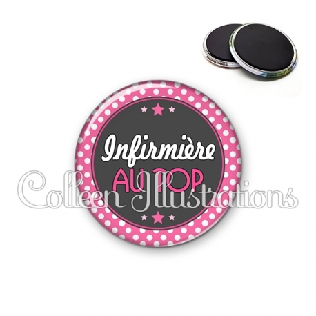 Image imprimée en haute résolution sur papier de qualité, protégée d'un film plastique, et sertie sur une coque métallique avec dos aimanté.