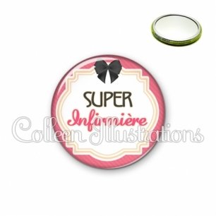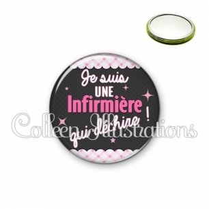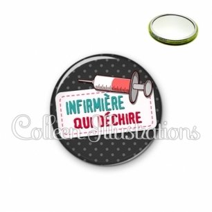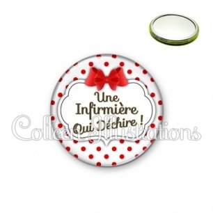 Miroir simple avec dos métallique décoré d'une image fantaisie et texte.
