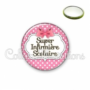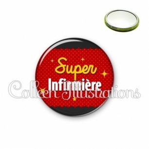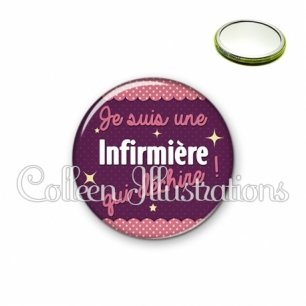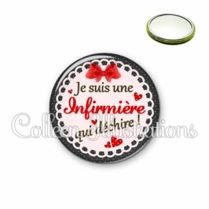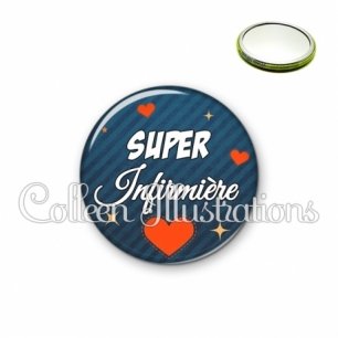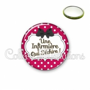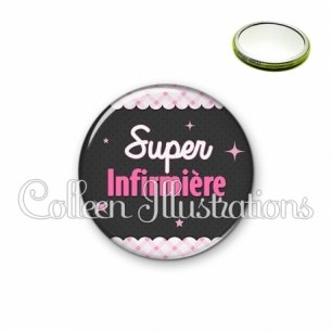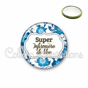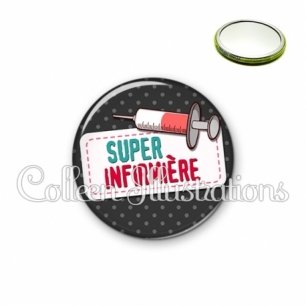 Miroir simple avec dos métallique décoré d'une image fantaisie et texte.