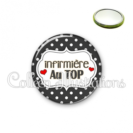 Miroir simple avec dos métallique décoré d'une image fantaisie et texte.