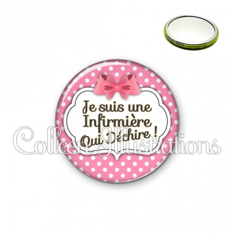 Miroir simple avec dos métallique décoré d'une image fantaisie et texte.