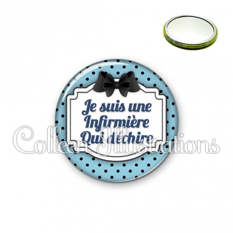 Miroir simple avec dos métallique décoré d'une image fantaisie et texte.