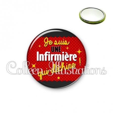 Miroir simple avec dos métallique décoré d'une image fantaisie et texte.